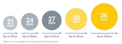 Tuy nhiên, mẹ Việt thường không sử dụng đến size phễu 36mm bởi vì khi đó kích thước ti mẹ tương đương với ngón chân cái.