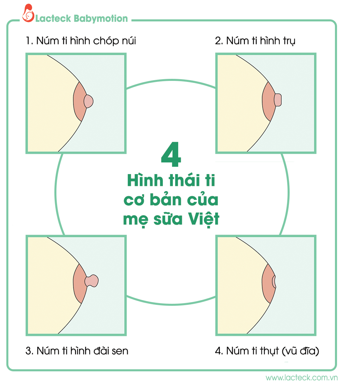 4 hình thái ti cơ bản của mẹ sữa Việt